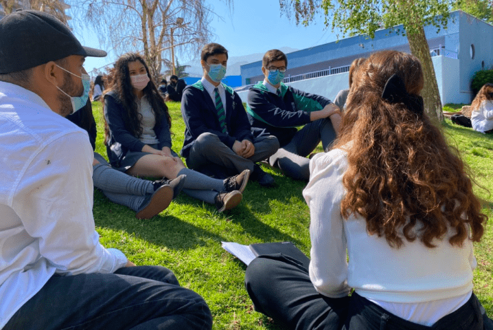 La delegación de nuestro establecimiento estuvo formada por Vicente Rodríguez, Josefina Pérez (de 3° A) y Héctor Rodríguez, Claudia Sanhueza y Almendra Reyes (de 3° B), acompañados por el profesor Ricardo López.